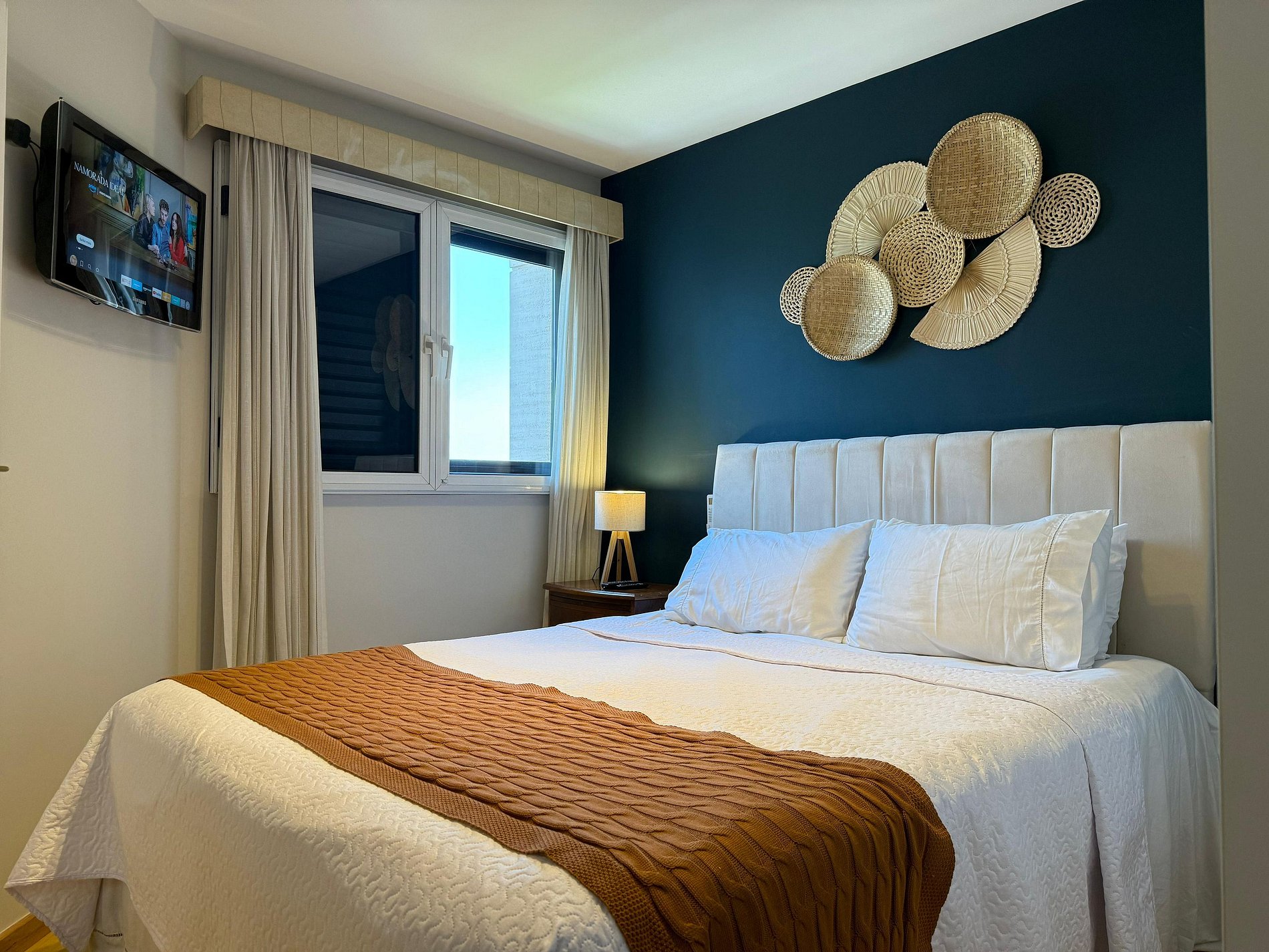 - Suíte com cama queen, Ar condicionado, TV 29" com Fire Stick e acesso ao Prime Video