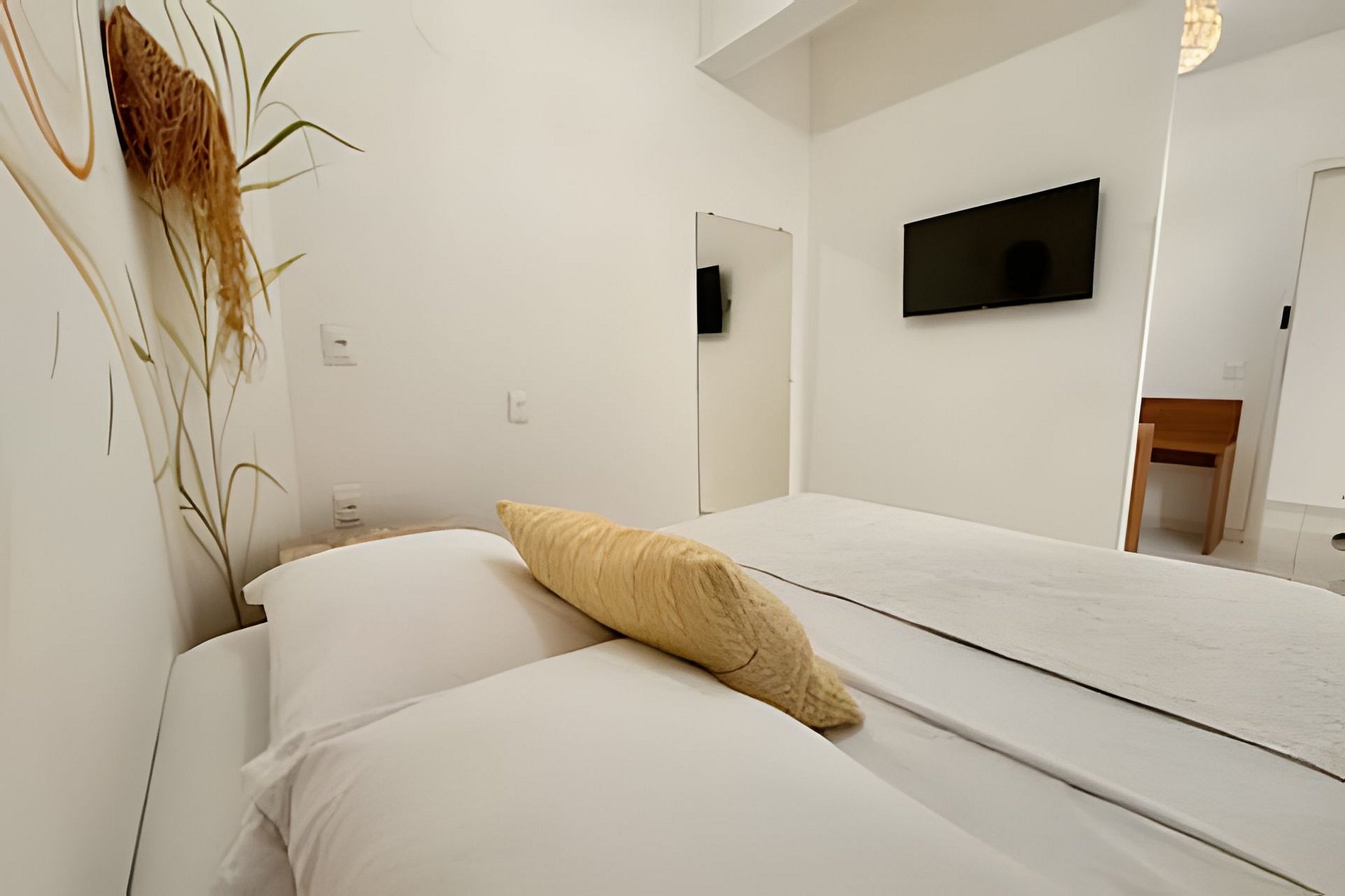 O apartamento está pronto para receber você e sua família com toda estrutura e conforto, segurança e aconchego. Cada detalhe foi pensado para isso. É só entrar e aproveitar! No apartamento: - Uma cama King, três camas queen, uma cama de casal e uma cama de solteiro - Uma suíte com cama queen e ar condicionado - Ventiladores fornecidos para os demais quartos - TV Smart 32” em quatro suítes, sem antena de sinal local ou a cabo - TV Smart 50" em uma suíte - 8º andar - Wifi - Self Check-in com portaria eletrônica e chave digital no apartamento - Roupas de cama e banho inclusas, sem trocas - Cozinha completa com purificador de água - Mantimentos fornecidos: sal, café, açúcar e detergente Áreas comuns: - Portaria Eletrônica - Elevador - Uma vaga no estacionamento