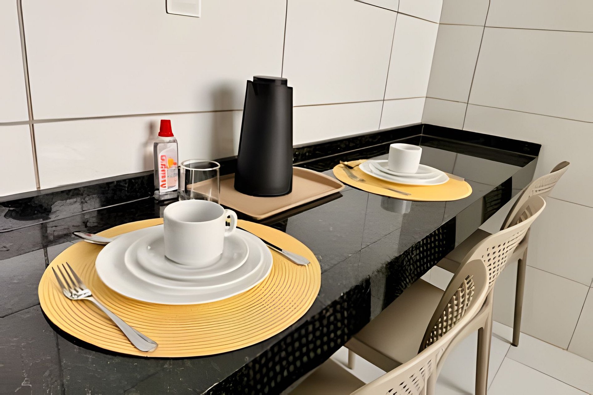 1. Lembramos que sua reserva é para um apartamento de temporada (condomínio residencial). 2. Não temos serviço de quarto e não servimos nenhum tipo de refeição ou café da manhã. A higienização do apartamento (recolher lixo, limpeza do banheiro e do piso, arrumar a cama) pode ser solicitada diariamente por um custo adicional. 3. Não possuímos rede de proteção nas janelas e varanda.