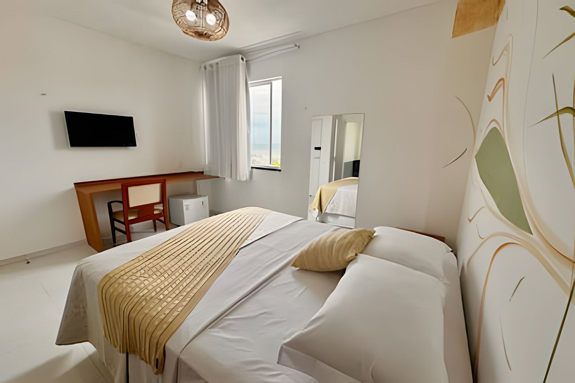 O apartamento está pronto para receber você e sua família com toda estrutura e conforto, segurança e aconchego. Cada detalhe foi pensado para isso. É só entrar e aproveitar! No apartamento: - Uma cama King, três camas queen, uma cama de casal e uma cama de solteiro - Uma suíte com cama queen e ar condicionado - Ventiladores fornecidos para os demais quartos - TV Smart 32” em quatro suítes, sem antena de sinal local ou a cabo - TV Smart 50" em uma suíte - 8º andar - Wifi - Self Check-in com portaria eletrônica e chave digital no apartamento - Roupas de cama e banho inclusas, sem trocas - Cozinha completa com purificador de água - Mantimentos fornecidos: sal, café, açúcar e detergente Áreas comuns: - Portaria Eletrônica - Elevador - Uma vaga no estacionamento